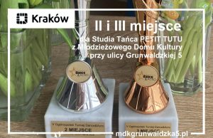 Studio Tańca TETIT TUTU z Młodzieżowego Domu Kultury przy ulicy Grunwaldzkiej 5 w Krakowie w dniu 28 marca 2026 r. wzięło udział w V Ogólnopolskim Turnieju DANCE & ACRO w Myślenicach, zdobywając II i III miejsce. Wszystkie prezentowane choreografie jak też kostiumy były autorstwa nauczyciela prowadzącego TETIT TUTU Pani Anny Urban. Gratulujemy wspaniałego sukcesu.