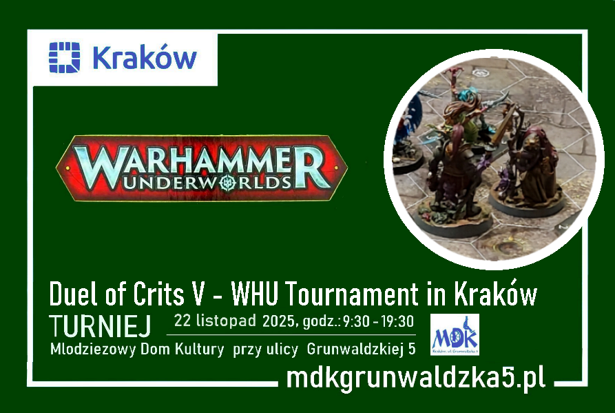 Za nami piąta, ostatnia w tym roku i REKORDOWA pod kątem frekwencji odsłona Krakowskiego Turnieju WHU – Duel of Crits! Tym razem do Krakowa dołączyło 8 różnych miast, aby rywalizować o najnowsze, zielone Szkiełko i promki.